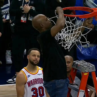 由于维修时间过长,库里甚至在边上静静观看“学习”工作人员的更换篮网过程。